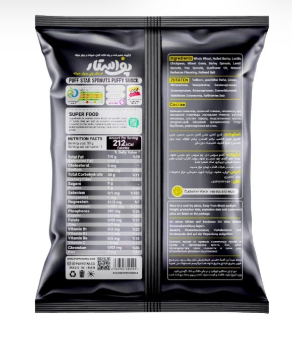 اسنک چهار جوانه پف استار با طعم باربیکیو
