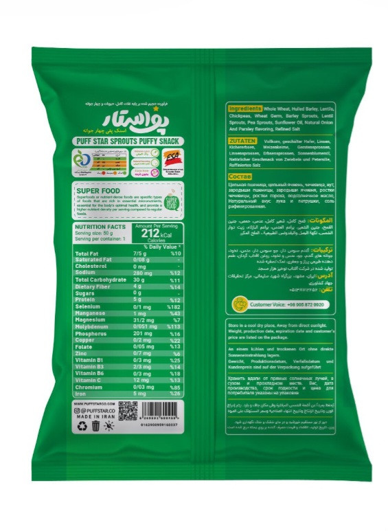 اسنک پف استار چهارجوانه با طعم پیاز و جعفری